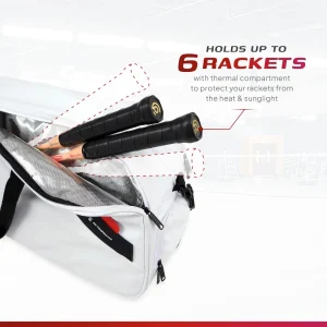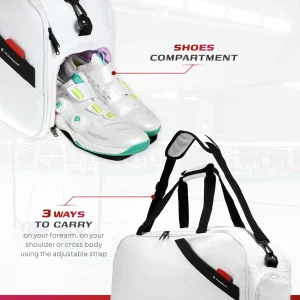 Badminton Shoulder Bag: A stylish and convenient bag designed to carry your badminton essentials, including rackets and accessories. It features an adjustable shoulder strap for comfortable carrying, a spacious main compartment, and additional pockets for organized storage, making it ideal for players on the move.